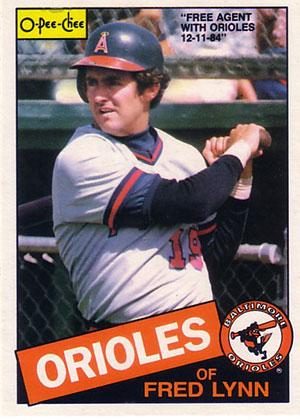 Images of baseball cards from Fred Lynn’s career